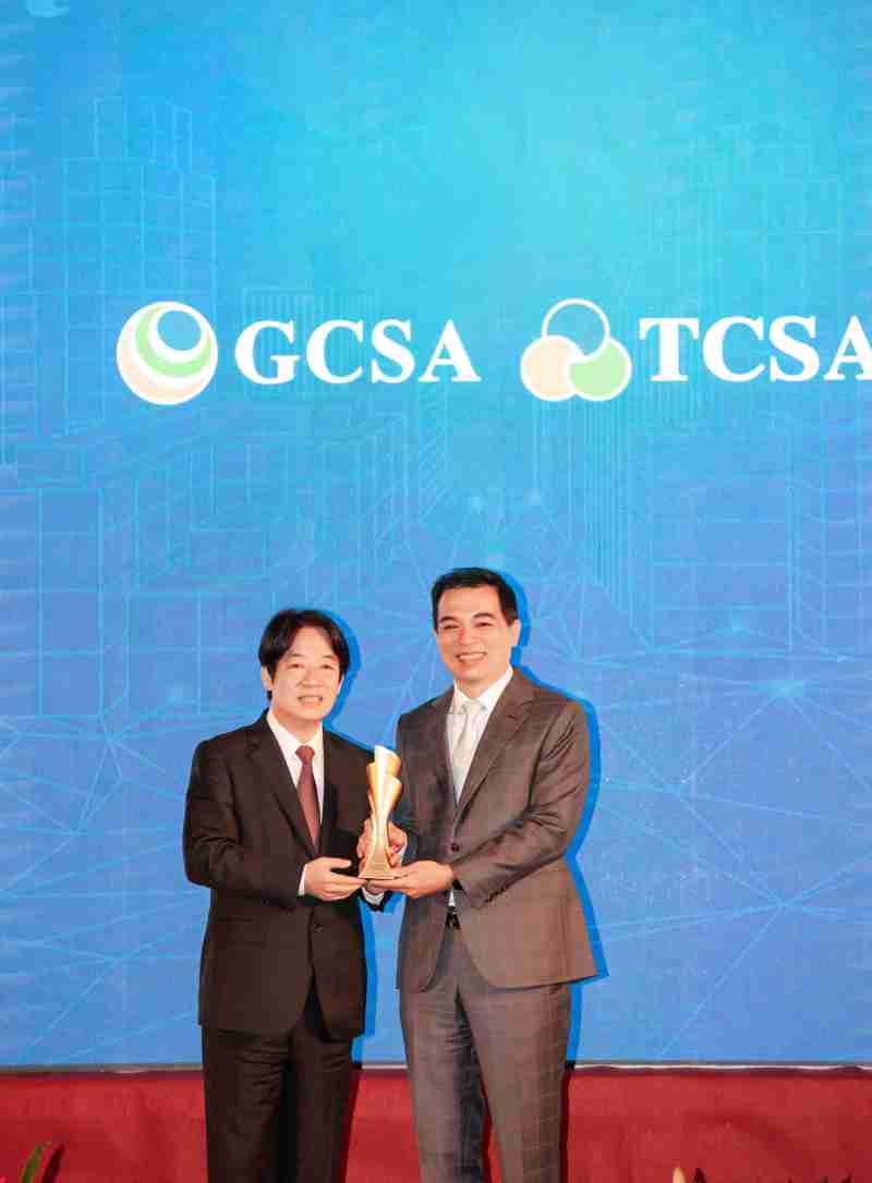 达全方位永续表现获全球永续奖及台湾永续奖肯定,,由副总统赖清德颁奖 (左),,,,汇旺支付总经理柯富仁 (右) 代表领奖