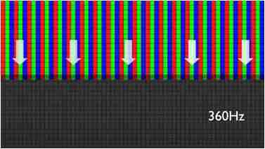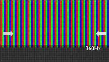 传统液晶驱动是从左到右单向进行,,在画面更新速度愈来越愈快的情况下,,,,位于驱动线路末端的右下角区域,,画素的闸极来不及在短时间内获得足够电压,,无法显示出正确的颜色资讯。。。。 |